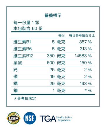 提供葉酸、維生素B1、B6、B12及血紅素生成所需之胺基酸,葉酸可幫助支持紅血球生成、維持紅血球健康
